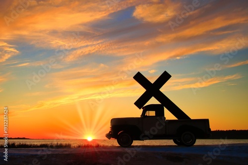Sunset Sky Pickup Truck Cross Silhouette Sun Rays Sunset