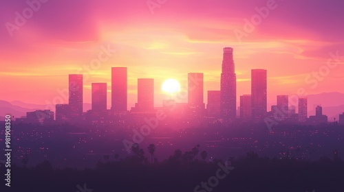 Sunset Skyline Cityscape With Silhouetted Buildings