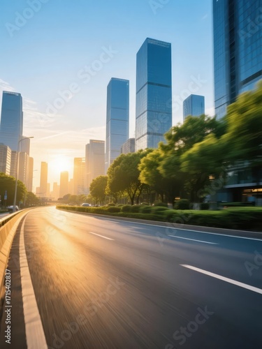 city landscape, skyscraper, sunrise, urban, road, tree, modern architecture, clear sky, golden hour, asphalt, greenery, metropolitan, downtown, horizon, motion blur, street, landscape, architecture, city, building, skyscraper, traffic, skyline, building, business, highway, china, office, travel, sky, tower, car, car, asia, beijing, way, transportation
