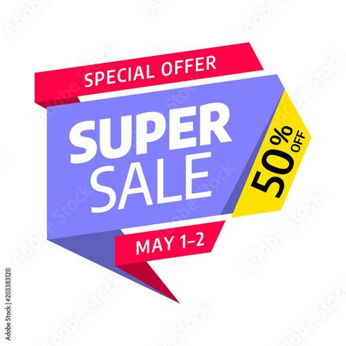 Super Sale. Big sale special offer. Banner template design. Can be used for discount tag or app icon or coupons or promotional material. Vector illustration.