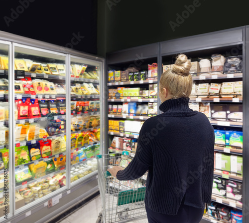 adult, aisle, buying, cheese, choice, choosing, comparison, consumerism, cottage cheese, cream, client, decision, egg, examining, food, deep freezer, freshness, girl, grocery, healthy eating, holding, label, lifestyle, looking, mall, market, middle-aged, milk, oil, package, pasta, people, price, raw, reading, refrigerated, refrigerator, retail, sale, section, shop, sour cream, standing, store, supermarket, woman, yogurt, young