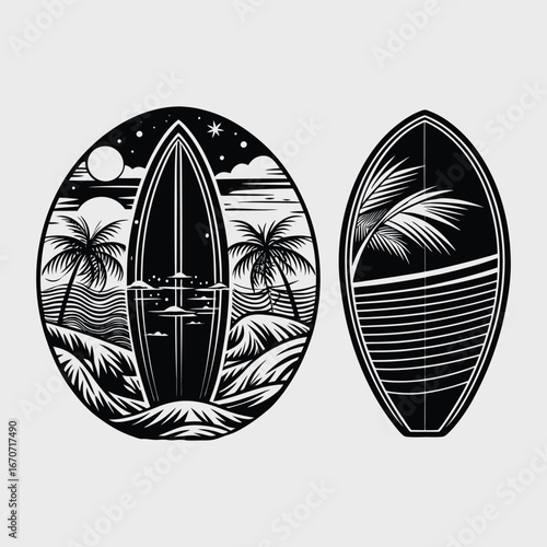 Surfboard Silhouette Vector Art, Simple modern minimal flat vector illustration. Logo, clipart, sign or symbol