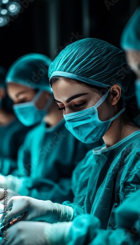 Surgical Team Concentration Operating Room Scene With Focused Medical Professionals During Surgery