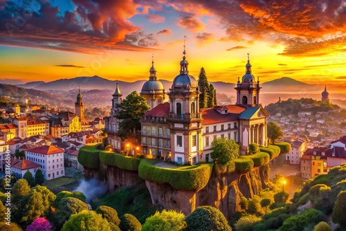 Surreal Braga Cityscape: Floating Buildings & Dreamlike Sky