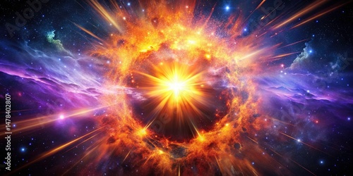 Surreal Cosmic Explosion: Vibrant Nebula, Fiery Orange Purple Space Art