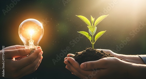 sustainability, ecology, energy, plant, light bulb, growth, hand, environment, nature, green, innovation, development, future, concept, eco, care, idea, technology, power, renewable, conservation, life, dirtied, germ bud, bright, earth, connection, protection, save, sunlight