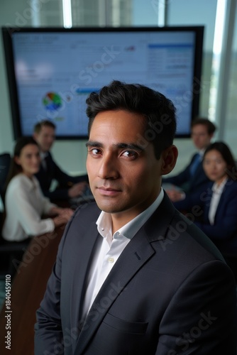 sustainability, adviser, suit, leading, presentation, boardroom, team, corporate, leadership, chart, impact, environmental, business, focused, professional, confident, portrait, executive, meeting, diversity, colleague, projector, screen, datum, strategy, green, report, teamwork, male, man, female, woman, formal, office, conference, board, presenter, policy, consulting, audience