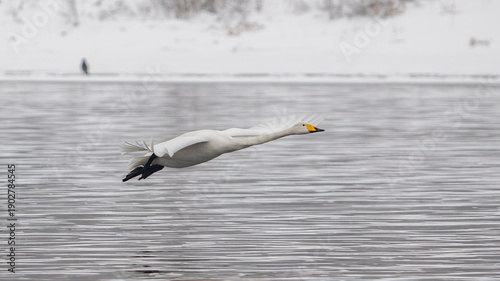 cygnet, flying, winter, landscape, river, poland, bird, bird, white, europa, wildlife, nature