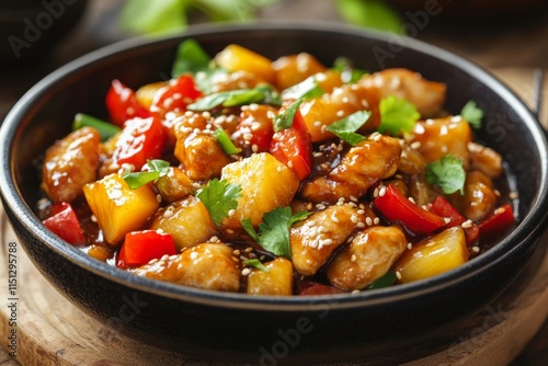 easy, cooking, eatery, dinner, simple, receipe, sweet, lunch, chicken, plate, sauce, delicious, meal, coriander, party, food, sesame, vegetable, appetising, cookery, bowl, tasty, comfort, dish, sour, pineapple, asian, healthy, red, pepper