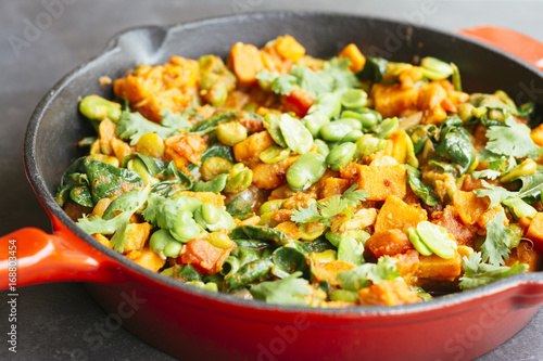 sweet potato, stew, homemade, vegetarian, vegan, spinach, ready-to-eat, pan, homemade, freshness, food, cast iron