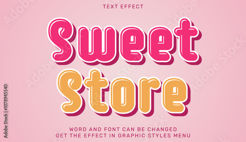 Sweet store text effect template in 3d design