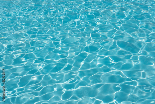 Swimming pool water ripples background, clean blue seiche waves in a spacious outdoor piscina, concept for summer vacation mood, tropical or hot destination holidays or traveling to an exotic location