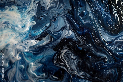 Swirling Blue Abstract: A captivating blend of deep and light blues creates a mesmerizing fluid art piece. Viscous textures add depth and intrigue.