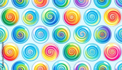 Swirling rainbow lollipop pattern on a light blue background candy colorful