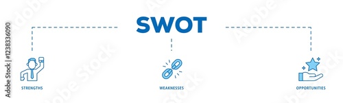 SWOT infographic icons flow process which consists of value, goal, break chain, low battery, growth, check, minus, and crisis icon live stroke and easy to edit .