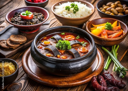 Sydney Korean Restaurant Night Photography: Blood Sausage Soup with Rice and Kimchi