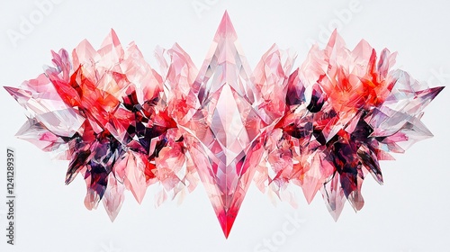 Symmetrical Abstract Crystal Formation Radiating Crimson And Pink Hues Against Simple Background.