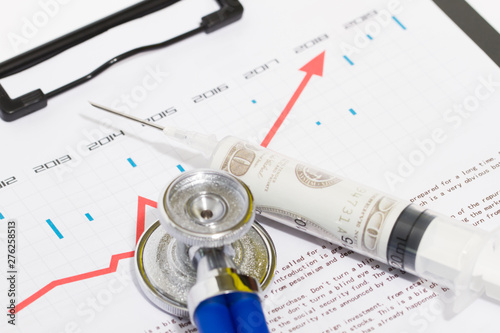 Syringe and US dollar, financial and economic improvement, capital injection, capital appreciation