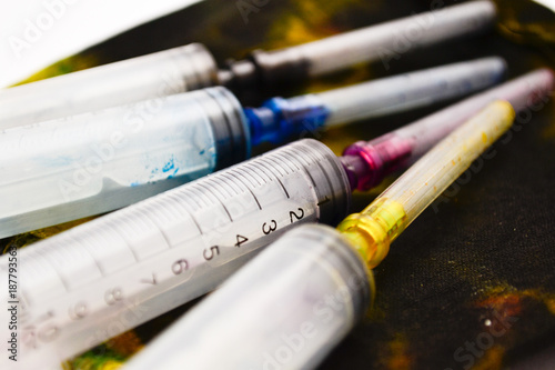 ink, printer, colours, white, blue, syringe, refill, plastic, yellow, paper, liquid, black, office, equipment, digital, full, print, tank, cyan, magenta, colourful, technology, red, paint, cmyk, inkjet, inkjet, closeup, light, colours, closeup