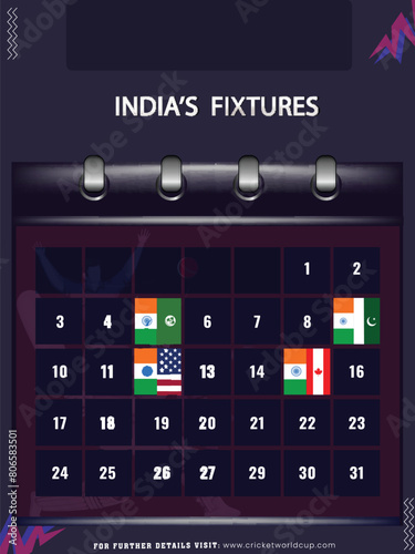 T20 Cricket Match India's Fixtures Calendar Based Poster Design for Advertising.
