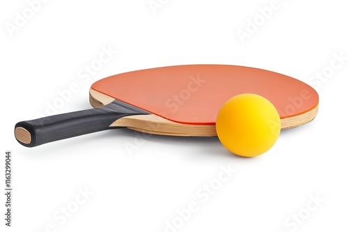Table Tennis Paddle and Ball Isolated on White Background.