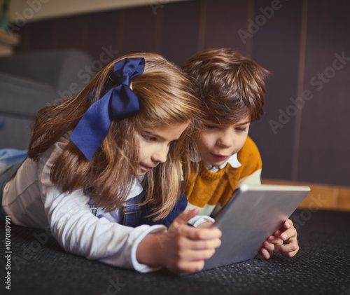 tablet, children, sibling, floor, home, children, technology, education, together, reading, children, online, digital, learning, relax, game, watch, show, motion picture, sister, brother, streaming, female, young, girl, people, family, male, house, boy, person, sofa, little, lying, small, media, social, cartoon, smart, cyberspace, web, play, entertainment, lounge, search, gaming, website, development