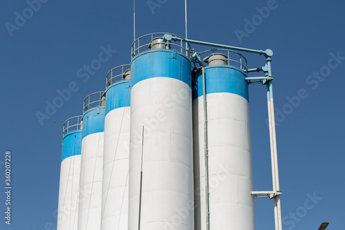 business, stainless, technology, equipment, chemical, round, export, abstraction, urban, cylindrical, building, cargo, nobody, large, old, plant, bulk, exterior, blue, industrial, structure, factory, barrel, architecture, tank, construction, modern, agriculture, storage, industry, production, concrete, background, sky, tower, tall, white, container, fragment, cement, abstract, row, reserve, cloud, yellow
