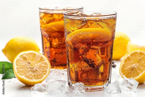black tea, lemon, slice, classic, simple, isolated, white background, drink, beverage, refreshment, citrous, elegant, traditional, fresh, minimalistic, vibrant, transparent, aromatic, tea leaf, glassware, garnish, bright, pure, minimalist, clean, clear, stylish, herbal, invigorating, zest, monochrome, relaxation, health, hydratation, organic, contrast, modern, presentation, tabletop, arrangement, serene, morning ritual, lifestyle, aesthetic