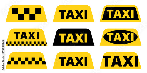 taxi, icon, cab, vector, car, drive, yellow, sticker, app, logotype, symbol, set