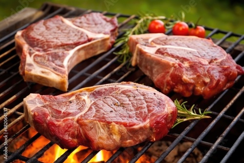 grilled, bar-b-q, steak, cooking, food, flames, meat, delicious, bar-b-q