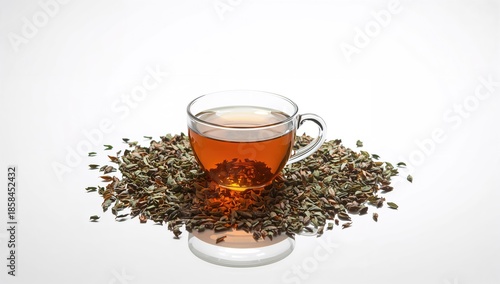 Tea leaves in a glass cup serving as a UI backdrop for beverage preparation, World Tea Day