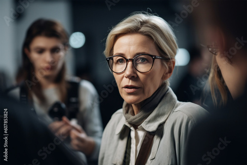 teacher professor communicates with students after the lecture answers questions. Generative AI
