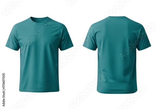 t-shirt, apparel, clothing, teal, front, back, isolated, blank, design, fashion, textile, cotton, fabric, wear, style, casual attire, simple, plain, garment, template, product, studio, white, background, colours, shape, sleeve, neck, shoulder, body, fit, soft, comfort, everyday, modern, classic, unisex, male, female, adult, youth, summer, spring, autumn, winter, season, trend