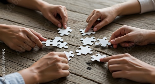 teamwork, collaboration, puzzle pieces, oneness, cooperation, hand, partnership, sharpened, strategy, wooden table, engagement, connection, working together, professional, educational, assembling, challenge