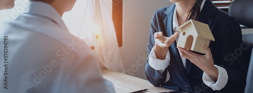 Technology and financial advisory services concert. Business teamwork and working on digital laptop computer with advisor showing plan of investment to clients at table office. Digital marketing.