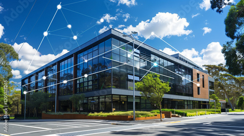 commercial, building, technology, sustainable, management, modern, environmentally friendly, architecture, blue, city, smart, tech, software, optic, new energy, cyberspace, cloud, digital, enterprise, university, information, information technology, glasses, office, business, skyscraper, sky, tower, window, construction, tall, urban, exterior, window, design, high