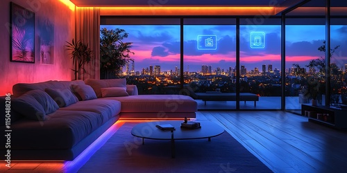 Technology Smart home with connected devices and digital icons Glowing house with symbolism