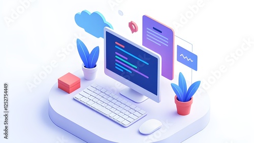 programming, code, development, technology, office, computer, desktop, digital, cyberspace, software, program, design, creative, minimalist, flat, web design