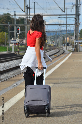 girl, suitcase, baggage, arrive, arrival, information, boarding, business, departure, destination, railway, railcar, electronic, europa, passenger, timetable, track, freight train, hint, information board, info, locomotive, people, travel, destination, rail, plate, stream, technology, transport, vacation, communication, time, train, children, rail, railroad station