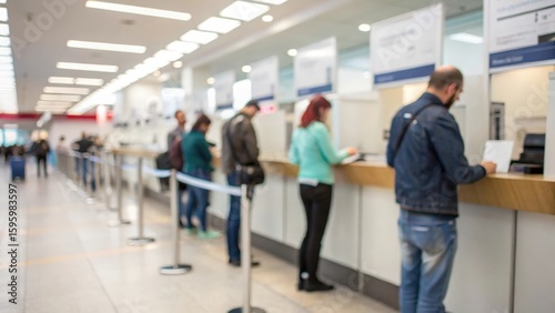 Teller Queue Blur — blurred line of customers at bank counters for service and waiting concepts