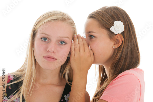 gossip, girl, whispering, news, teenage, teenage, secret, children, girlfriend, friends, 2, friendship, children, female, schoolgirl, idea, youth, emotion, student, discussing, telling, listening, attention, question, outrageous, scarey, enormous, sensational, isolated, white, background, studio