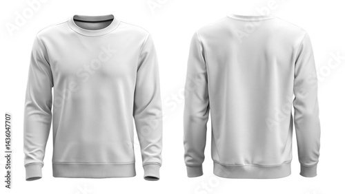 Template for a plain white sweatshirt mockup, featuring front and back views on a transparent background