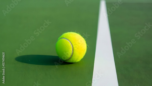 tennis, tennis ball, ball, court, green, white line, sport, sports equipment, game, competition, closeup, athlete, daylight, play, ground, field, match, action, tennis court, surface, bright, yellow, training, exercise, leisure, recreation, tournament, professional, lawn, textured, shadow, sport, single, object, isolated, closeup, striped, synthetic