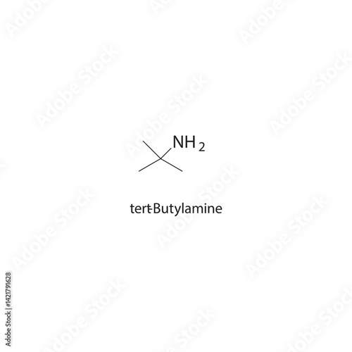 tert-Butylamine skeletal structure. Amine compound schematic illustration. Simple diagram, chemical formula.
