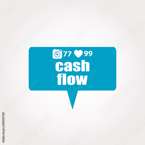 Text cash flow. Business concept . Labels with text, heart, camera and counters