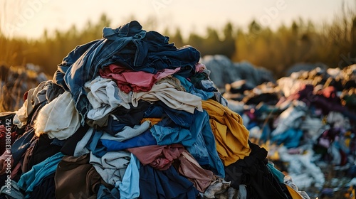Textile Waste: A Mountain of Discarded Clothing in a Landfill