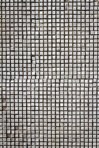 Texture of the old tile wall. Square white small tiles on concrete texture