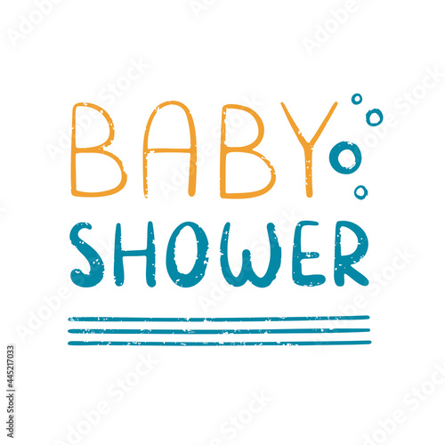 Textured "Baby shower" lettering with stripes and bubbles. Cute print. Handwritten text. Vector shabby hand drawn illustration