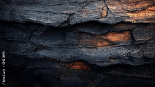Textured Burnt Wood Background Charred Black Timber Close-Up Abstract Patterns of Scorched Woodgrain