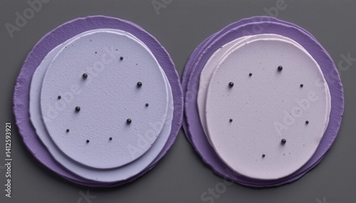 Textured Layers Layered ovals or ellipses in varying shades of purple with small black dots for added detail.